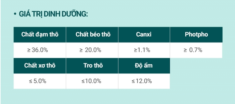 *Lượng thức ăn cần được điều chỉnh tùy thuộc vào giống vật nuôi, tuổi tác và cân nặng