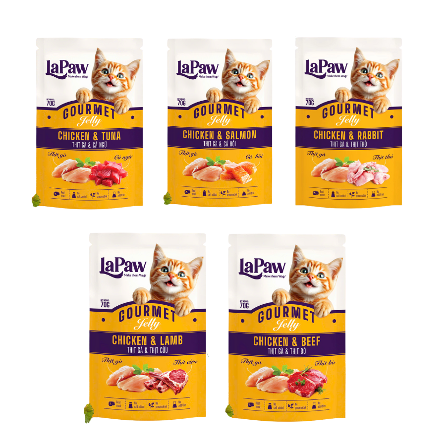 Thịt bò, thịt gà, gan gà, dầu gà, nước tinh khiết, taurine, chiết xuất rong biển, vitamin A(.D3,EB. 1B,. 2,B6B, 12),niacin,canxi pantothenate, D-biotin,axit folic,choline,organicrion, hữu cơcopperorganiczinc , mangan hữu cơ, iốt, selen hữu cơ.