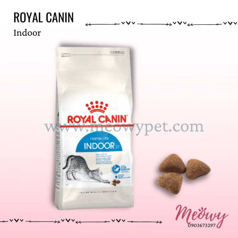 Thức ăn dinh dưỡng ROYAL CANIN Indoor dành riêng cho mèo sống trong nhà có lối sống ít vận động, nhu cầu năng lượng thấp hơn và nguy cơ béo phì cao hơn.