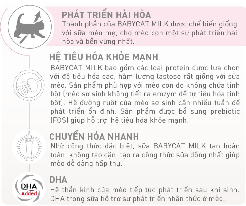 Thành phần dinh dưỡng trong ROYAL CANIN BABYCAT MILK (Ảnh: www.cityzoo.vn)